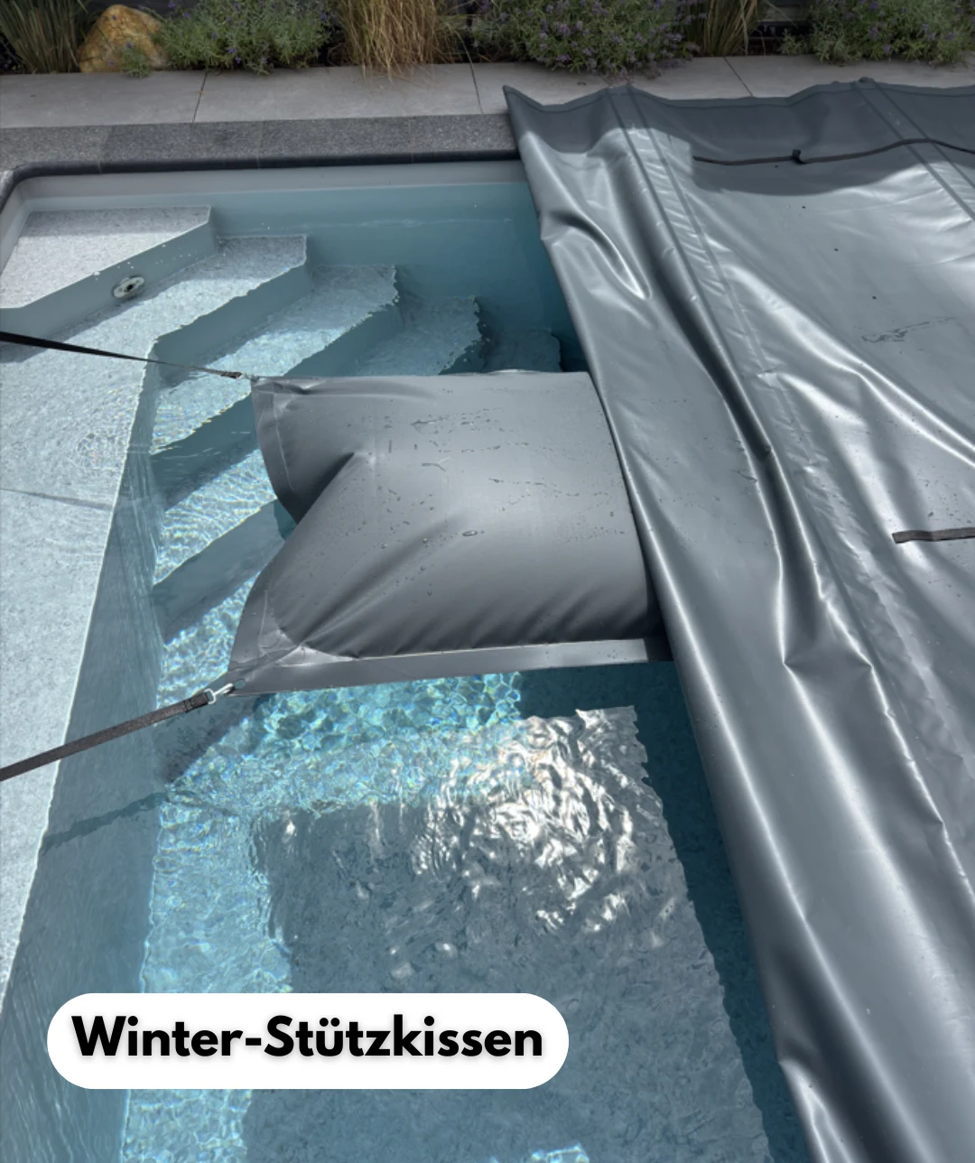 Mit einem speziellen Winterkissen verwandeln Sie Ihre Stangenabdeckung in eine robuste Winterlösung, die Ihren Pool vor Frost und Schnee schützt.